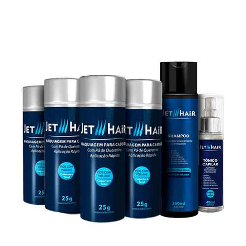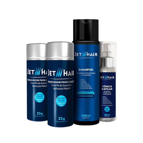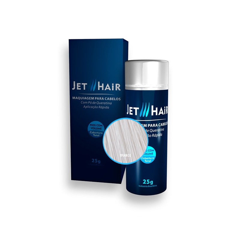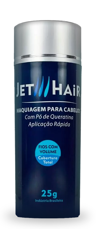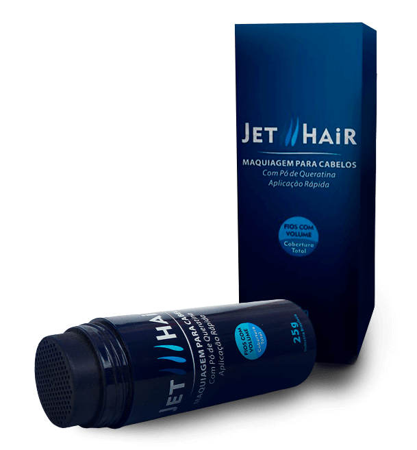 Jet Hair é um produto que aumenta instantaneamente o volume dos cabelos e é indicado para homens e mulheres com problemas de calvície ou rarefação em algumas áreas do cabelo. É à base de queratina e promove uma cobertura uniforme aos fios, preenchendo espaços calvos. Adere eletrostaticamente aos fios e dá liberdade e segurança no uso, eliminando falhas em segundos.